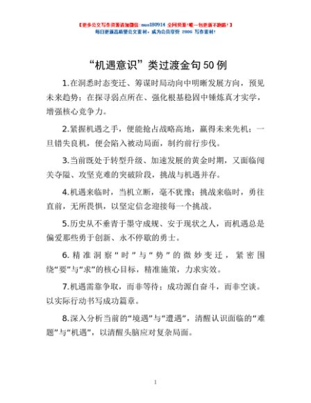 / “机遇意识”类过渡金句50例