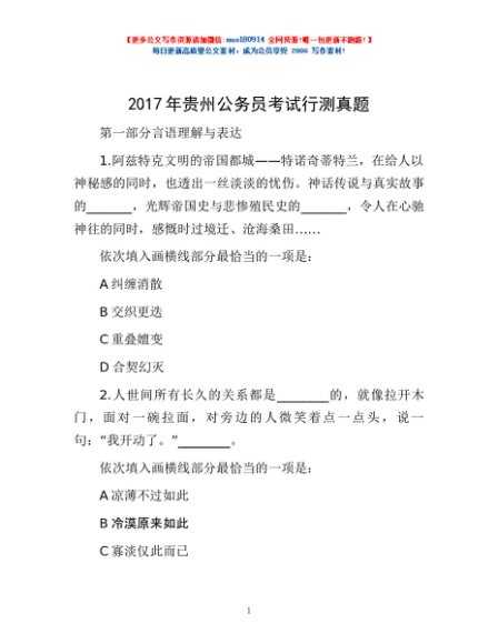 / 2017年贵州公务员考试行测真题
