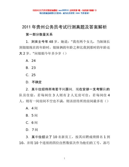 2011年贵州公务员考试行测真题及答案解析