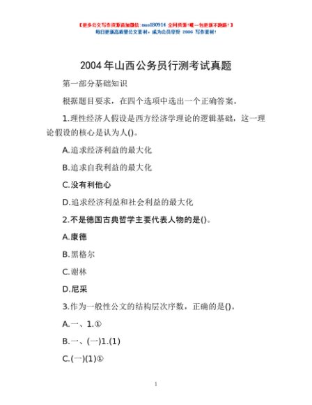 2004年山西公务员行测考试真题