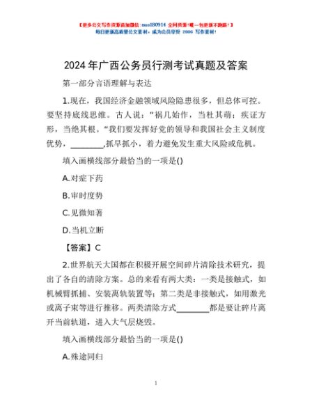 / 2024年广西公务员行测考试真题及答案