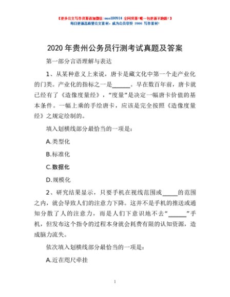 / 2020年贵州公务员行测考试真题及答案
