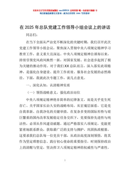 / 在2025年总队党建工作领导小组会议上的讲话