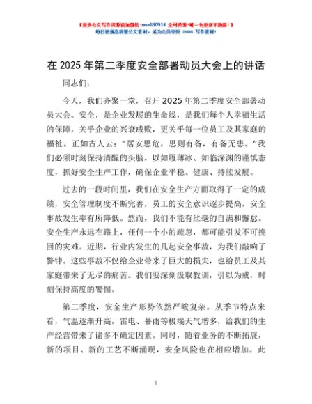/ 在2025年第二季度安全部署动员大会上的讲话