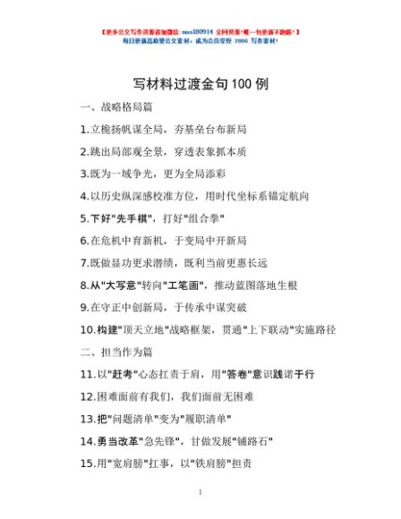 / 写材料过渡金句100例
