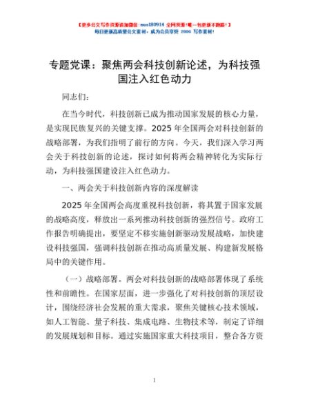 / 专题党课:聚焦两会科技创新论述,为科技强国注入红色动力