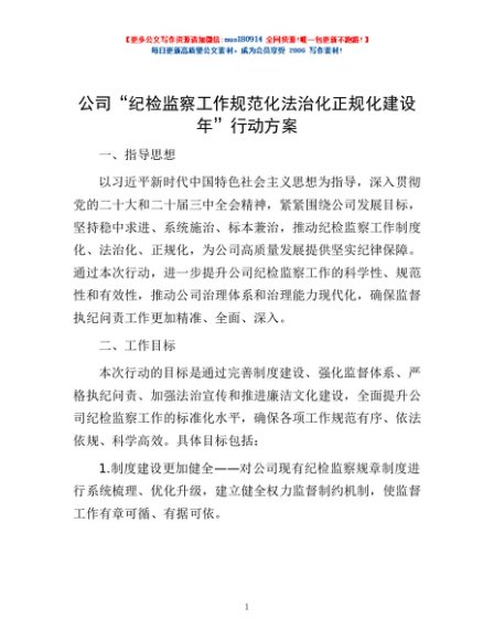 / 公司“纪检监察工作规范化法治化正规化建设年”行动方案