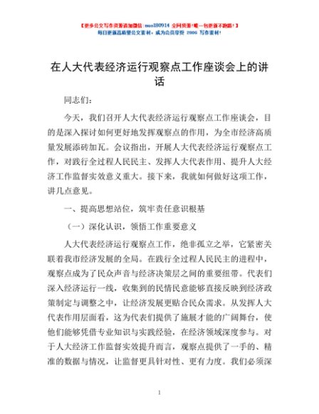 / 在人大代表经济运行观察点工作座谈会上的讲话
