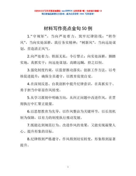 / 材料写作亮点金句50例