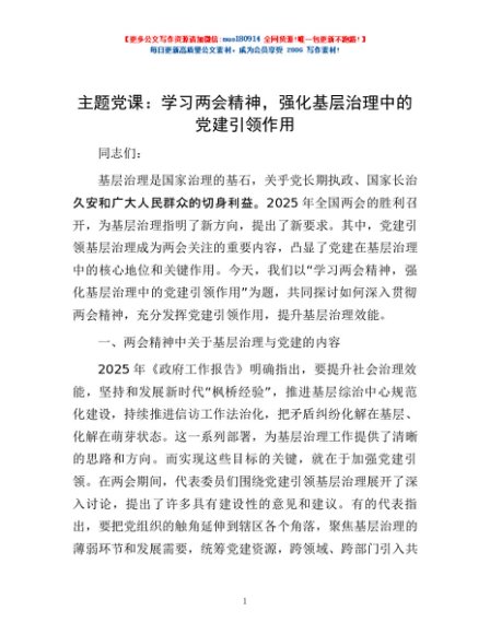 / 主题党课:学习两会精神,强化基层治理中的党建引领作用