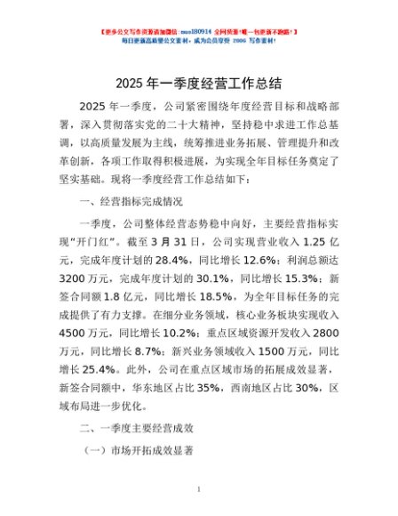 / 2025年一季度经营工作总结