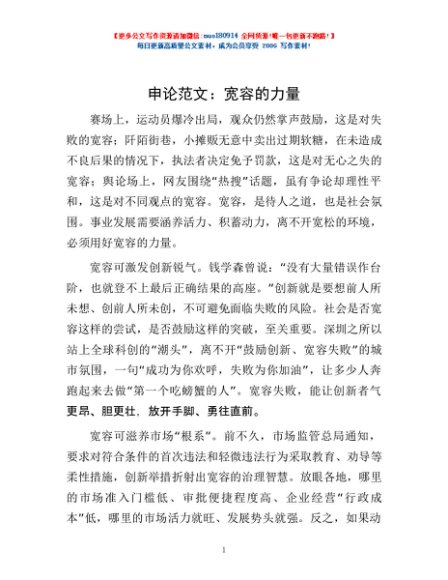 申论范文:宽容的力量