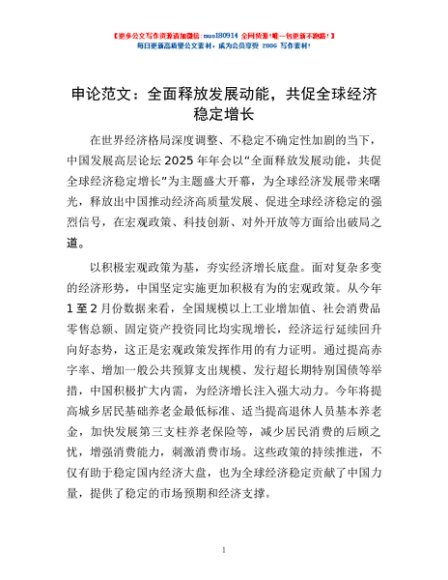 / 申论范文:全面释放发展动能,共促全球经济稳定增长