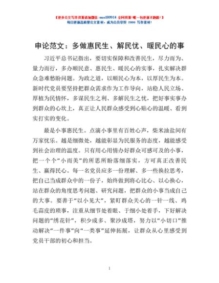 / 申论范文:多做惠民生、解民忧、暖民心的事