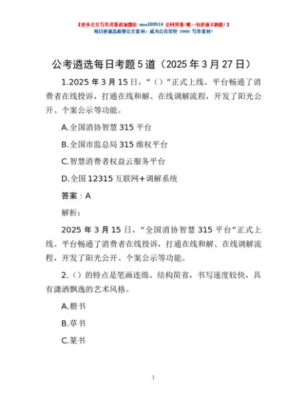 / 公考遴选每日考题5道(2025年3月27日)