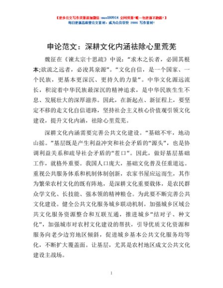 / 申论范文:深耕文化内涵 祛除心里荒芜
