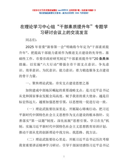 / 在理论学习中心组“干部素质提升年”专题学习研讨会议上的交流发言