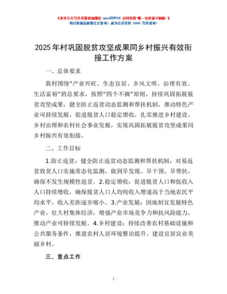 / 2025年村巩固脱贫攻坚成果同乡村振兴有效衔接工作方案
