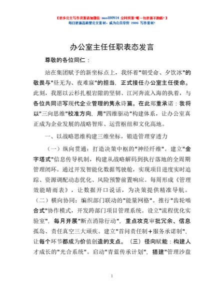/ 办公室主任任职表态发言