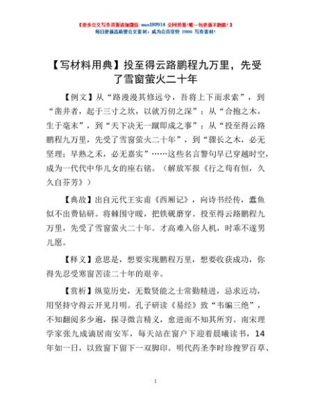 【写材料用典】投至得云路鹏程九万里,先受了雪窗萤火二十年