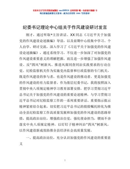 / 纪委书记理论中心组关于作风建设研讨发言