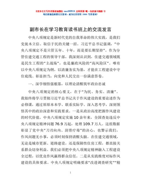 / 副市长在学习教育读书班上的交流发言