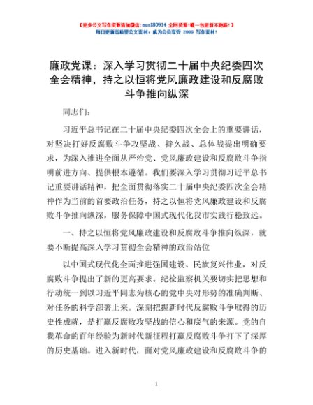 / 廉政党课:深入学习贯彻二十届中央纪委四次全会精神,持之以恒将党风廉政建设和反腐败斗争推向纵深
