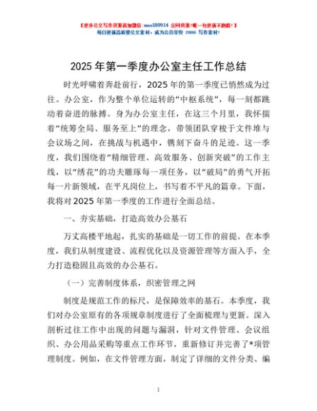 / 2025年第一季度办公室主任工作总结