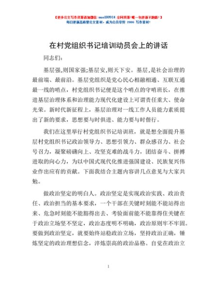 / 在村党组织书记培训动员会上的讲话