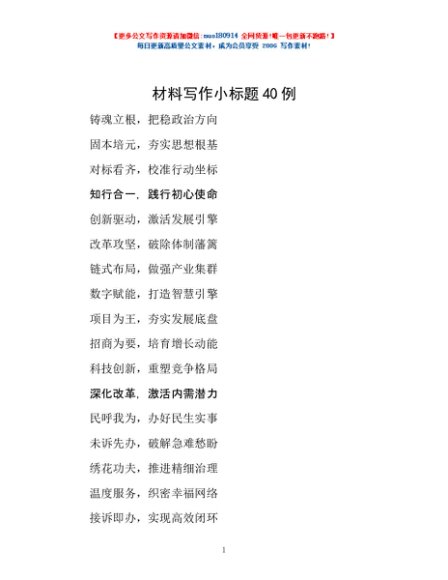 材料写作小标题40例