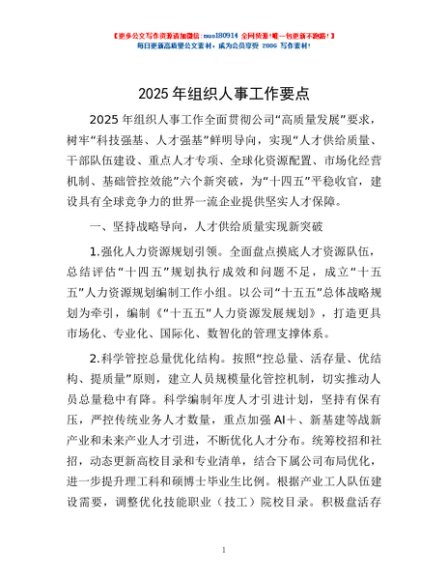 / 2025年组织人事工作要点