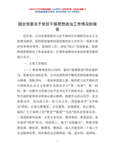 / 国企党委关于党员干部思想政治工作情况的报告