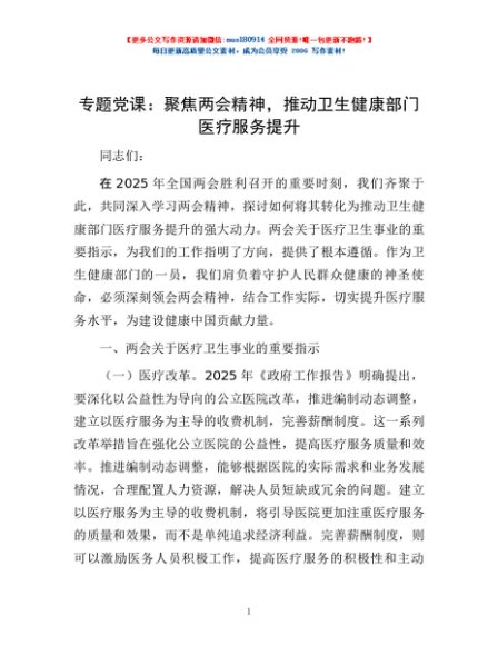 专题党课:聚焦两会精神,推动卫生健康部门医疗服务提升