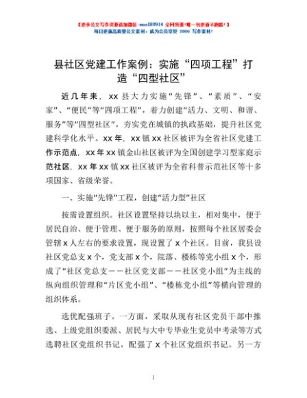 / 县社区党建工作案例:实施“四项工程”打造“四型社区”
