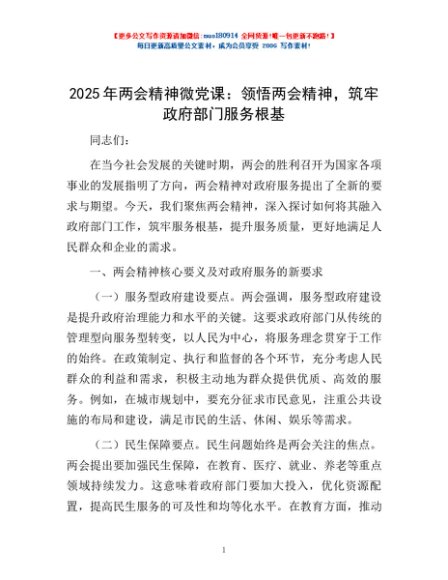 2025年两会精神微党课:领悟两会精神,筑牢政府部门服务根基