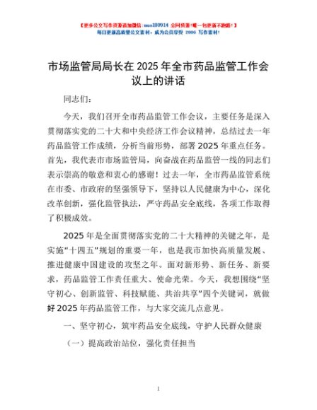 / 市场监管局局长在2025年全市药品监管工作会议上的讲话