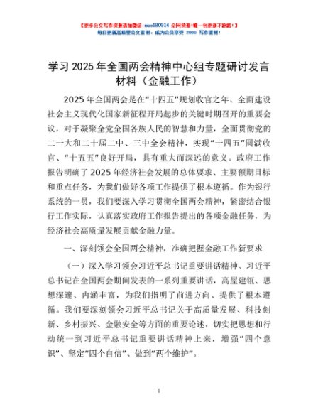 / 学习2025年全国两会精神中心组专题研讨发言材料(金融工作)