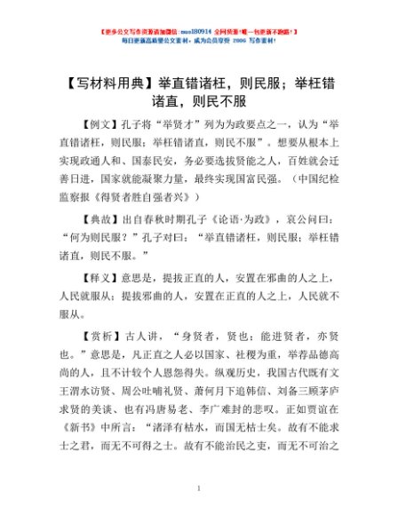 / 【写材料用典】举直错诸枉,则民服;举枉错诸直,则民不服