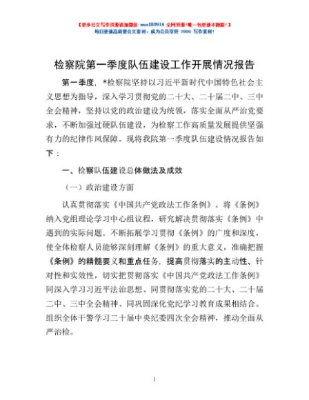 / 检察院第一季度队伍建设工作开展情况报告