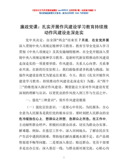 / 廉政党课:扎实开展作风建设学习教育 持续推动作风建设走深走实