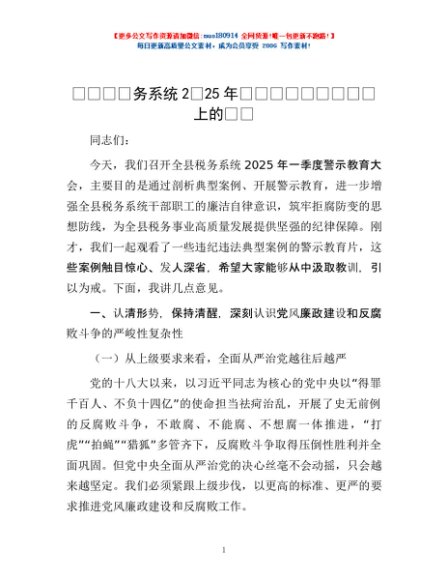/ 在全县税务系统2025年一季度警示教育大会上的讲话