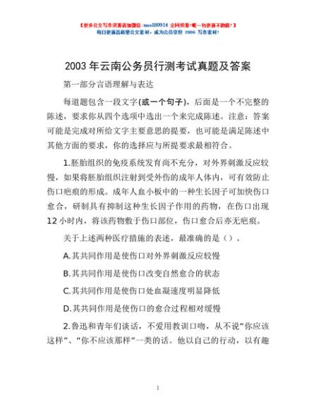 2003年云南公务员行测考试真题及答案