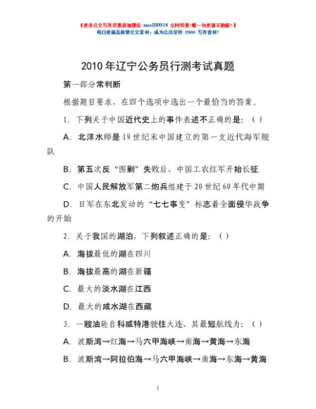 / 2010年辽宁公务员行测考试真题
