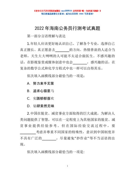 / 2022年海南公务员行测考试真题