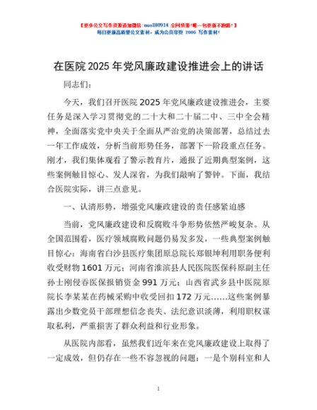 / 在医院2025年党风廉政建设推进会上的讲话