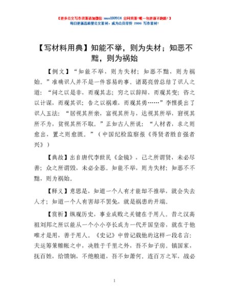【写材料用典】知能不举,则为失材;知恶不黜,则为祸始