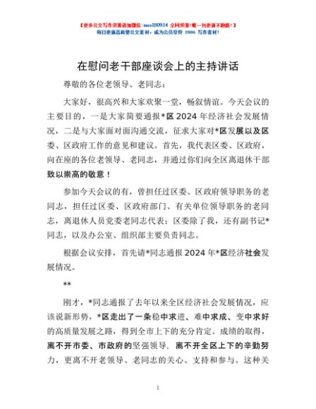 / 在慰问老干部座谈会上的主持讲话