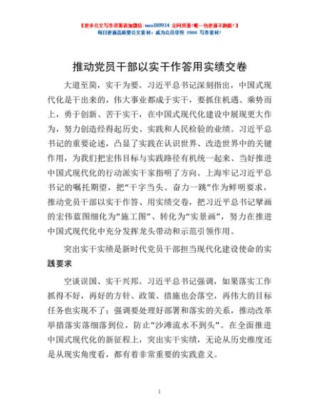 / 推动党员干部以实干作答用实绩交卷