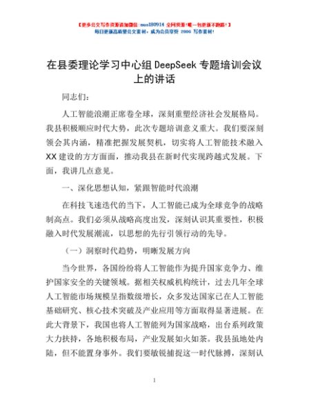 / 在县委理论学习中心组DeepSeek专题培训会议上的讲话