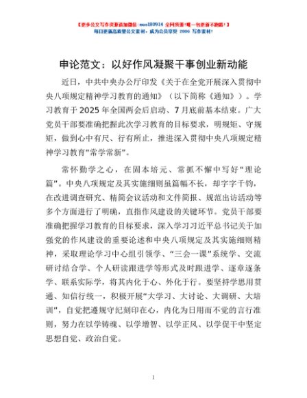 申论范文:以好作风凝聚干事创业新动能